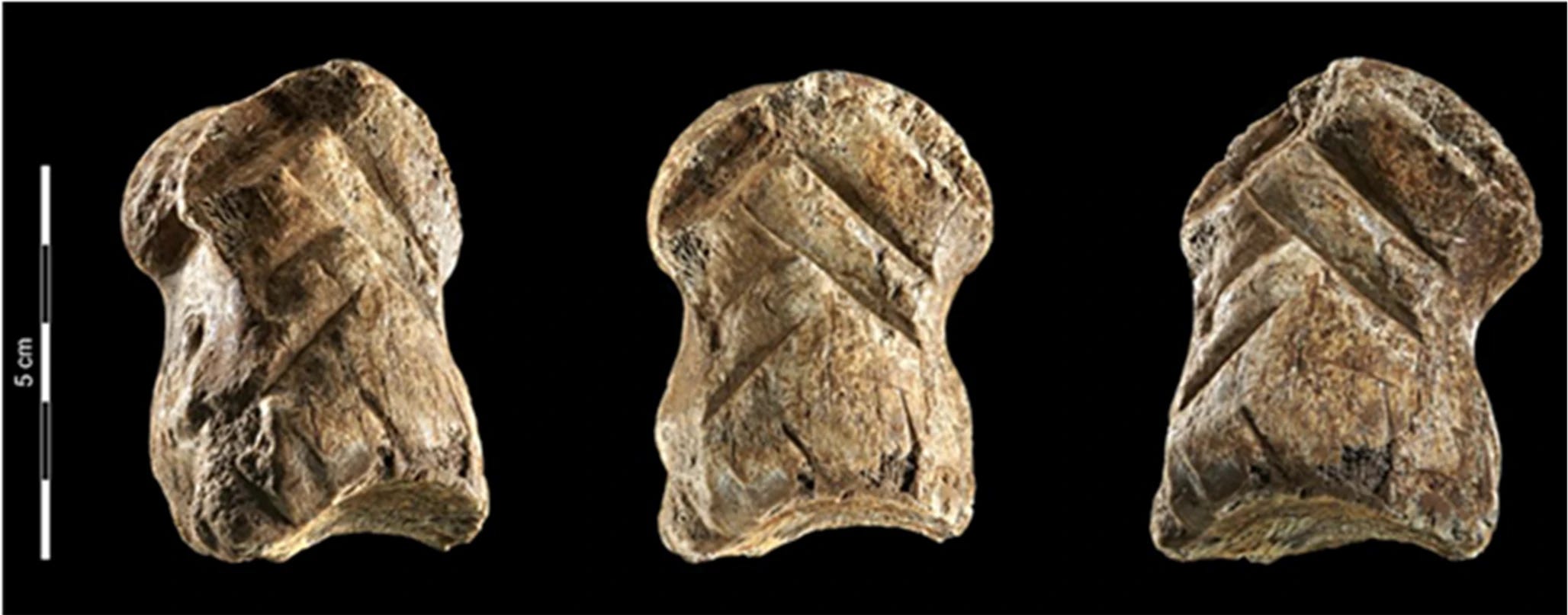 In 2021, a team led by Dirk Leder published an analysis of a 51,000-year-old giant deer phalanx recovered from Einhornhöhle in Lower Saxony. The bone had been deliberately engraved with a series of cuts and scraped lines. Micro-morphometric analysis ruled out accidental modification, butchery byproduct, or carnivore damage. The angles were too consistent. The location of the incisions made no sense functionally. Someone had made this object on purpose, and the only hominins present at that time and place were Neanderthals.