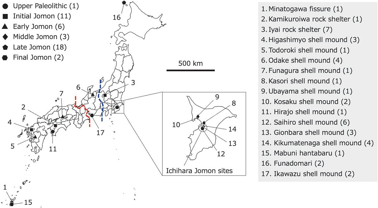 There’s a puzzle at the heart of Jomon genetics that has nagged at researchers for decades. Pull DNA from Jomon skeletons excavated in eastern Japan — Hokkaido, the Kanto region, the shell mounds strung along what is now Chiba Prefecture — and you find haplogroup N9b dominating the mitochondrial lineages. Do the same for western Jomon remains, and M7a takes over. The split is striking enough that it looks, at first glance, like two different peoples.