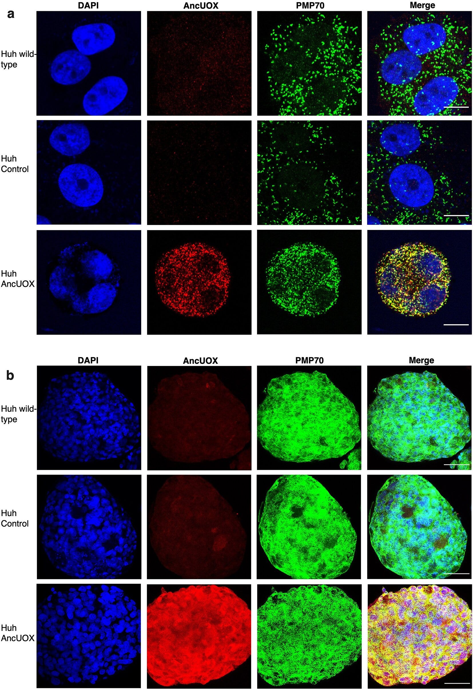 The experiment began with simple liver cell cultures and then scaled up to three-dimensional liver spheroids—tiny organ-like clusters that mimic the complexity of real tissue. In both systems, the enzyme didn’t just show up; it went to the right place inside the cell: the peroxisomes, the compartments where uricase traditionally operates in other mammals.