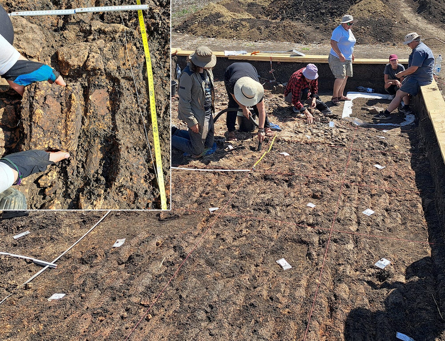 Noticeably absent: ovens, storage features, grinding stones. The amount of burnt clay associated with the structure is far lower than what appears in the domestic buildings at the site, which typically burn thoroughly and leave substantial daub deposits. The mega-structure’s walls may have been largely wooden, burning without leaving much material trace.
