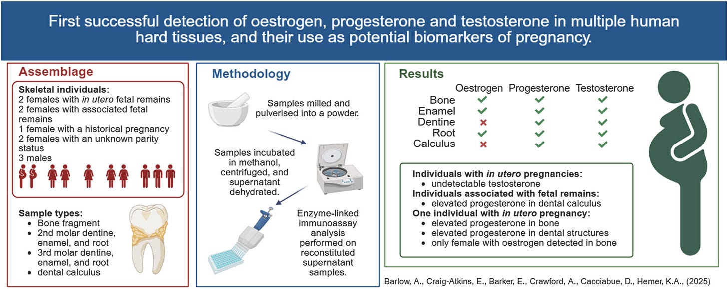 Now, a team of researchers from the University of Sheffield and University College London has managed to recover sex hormones from human bones, teeth, and dental calculus dating back nearly two millennia. Published in the Journal of Archaeological Science (Barlow et al., 2025),1 the study marks the first successful detection of estrogen, progesterone, and testosterone in archaeological hard tissues.