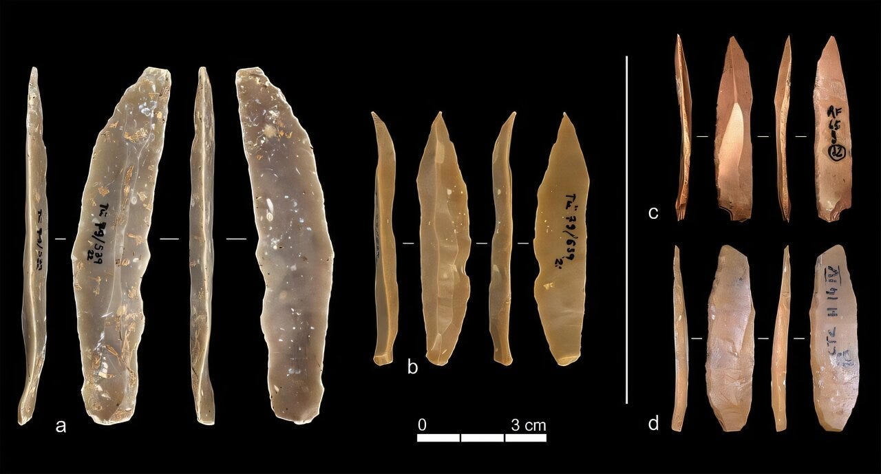 But tidy stories rarely survive the messiness of the archaeological record. A new study1 by Armando Falcucci of the University of Tübingen and Steven Kuhn of the University of Arizona argues that Europe’s first Upper Paleolithic toolmakers didn’t simply inherit their know-how from Levantine ancestors. Instead, the evidence points to something far more interesting: two populations of Homo sapiens—one in the Near East, another in southern Europe—arriving at similar technological solutions on their own.