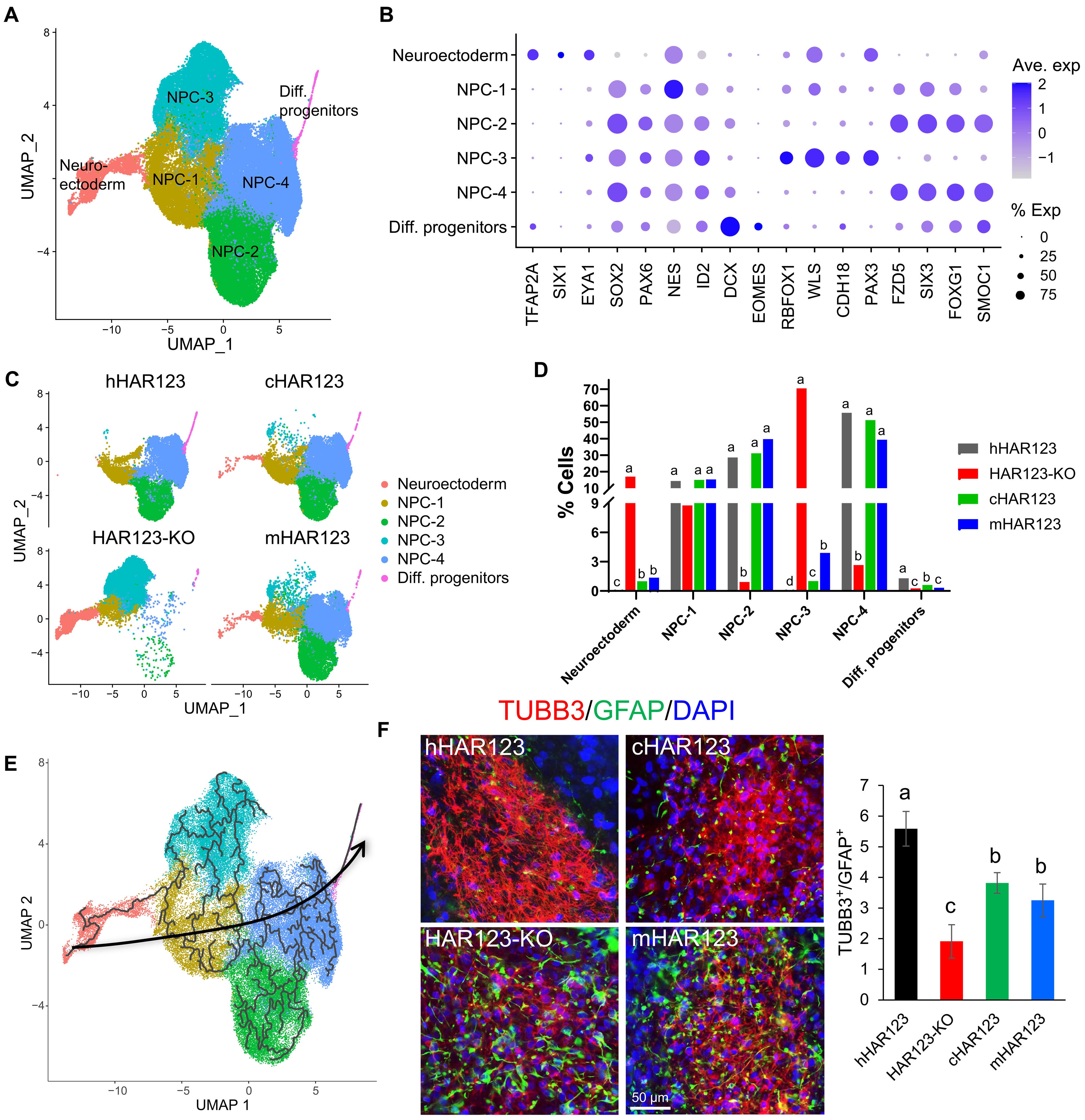 When the human and chimpanzee versions of HAR123 were compared in lab-grown stem cells, the enhancer shaped gene activity differently in each case. The human version promoted more dynamic regulation of neural progenitors, potentially granting our brains a broader repertoire of cell types and connections.