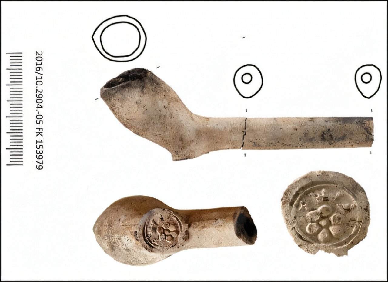 Somewhere between 1665 and 1680, a man was buried at the hip with a clay pipe. Traces of soot were still lodged in the bowl. The pipe maker’s stamp on the heel showed a crowned rose and the monogram RW, later traced to Reichard West, a pipe maker recorded in council minutes from Mannheim, Germany, who appears in the historical record between 1673 and 1675 and died around 1675 to 1676. Clay pipes of this period were fragile things, rarely lasting more than three years. The pipe had probably been purchased not long before the burial.