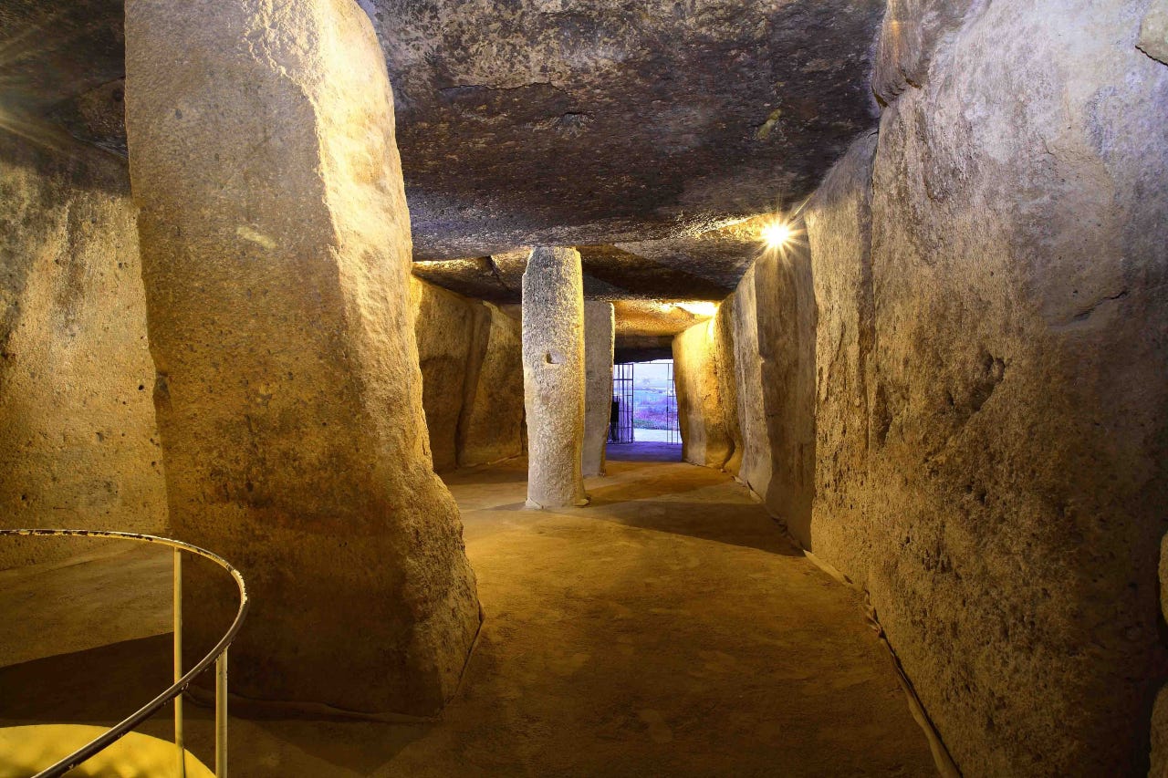 The Dolmen de Menga, outside Antequera in Andalusia, was built during the first half of the fourth millennium BCE. It is a massive megalithic passage grave, a UNESCO World Heritage site, and for most of its long existence, it has attracted people back to it in ways that are not straightforward to explain. These two medieval burials are part of that pattern.