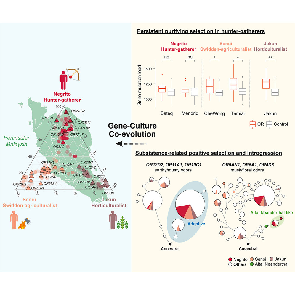 A study published this year in Cell Reports1 by Yueyang Ma, Boon-Peng Hoh, Shuhua Xu, and Lian Deng at Fudan University complicates that story in some interesting ways. The researchers examined olfactory receptor gene variation across fifty individuals from three Orang Asli populations in Peninsular Malaysia, alongside genomic data from more than 2,800 people drawn from sixty-five populations worldwide. What they found suggests the narrative of universal decline misses something important: not all populations are losing these genes at the same rate, and what predicts the difference is how people live.